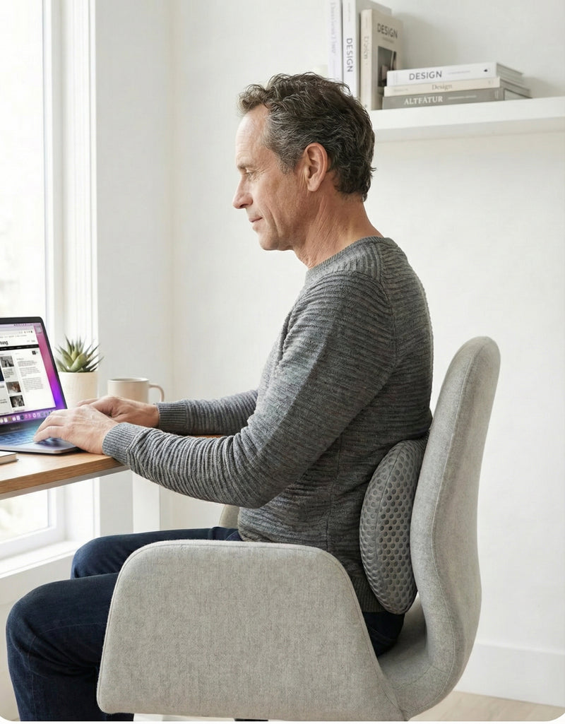 Wer täglich viele Stunden sitzt, schadet seiner Haltung oft unbemerkt. Herkömmliche Stühle lassen Ihren unteren Rücken „frei hängen“, was zu schmerzhaften Verspannungen führt. Das Evorin-Prinzip korrigiert Ihre Sitzposition aktiv und schließt die anatomische Lücke zwischen Rücken und Lehne. So schützen Sie Ihre Wirbelsäule präventiv vor Fehlbelastungen – jeden Tag aufs Neue.